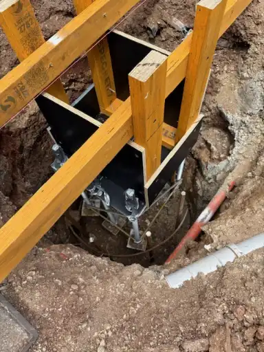 To manage these conditions, a vacuum truck was deployed to continuously control groundwater levels throughout excavation and concrete placement. This allowed the team to maintain dry, stable conditions for reinforcement installation and concrete pours, preventing potential defects and ensuring the foundations were constructed to specification.
